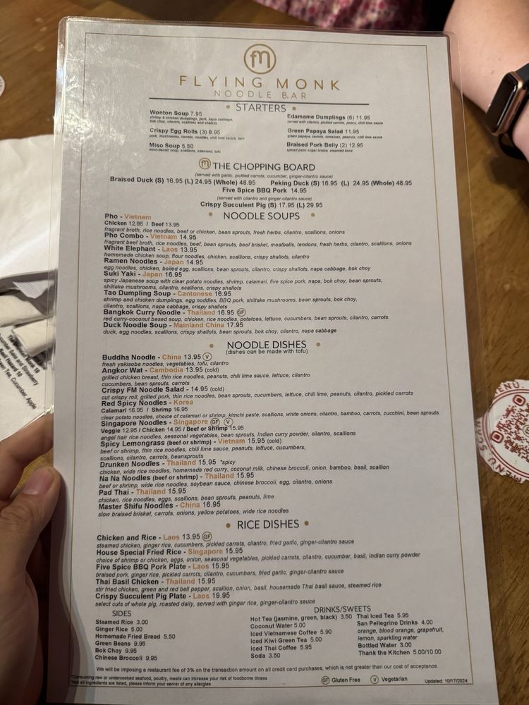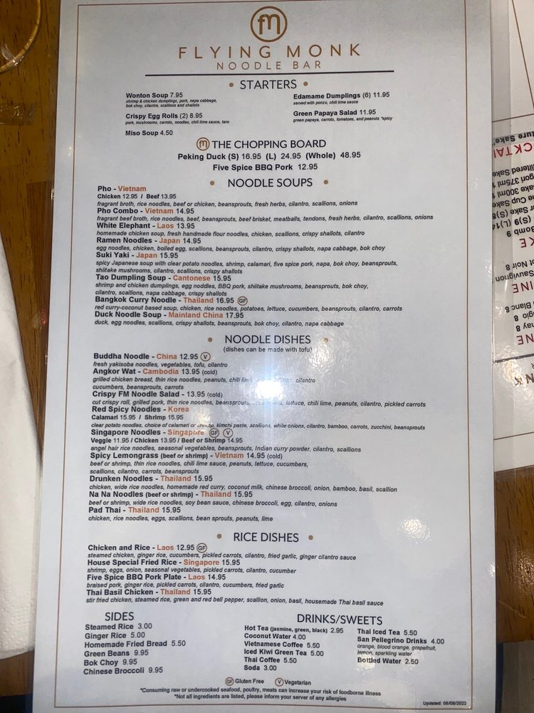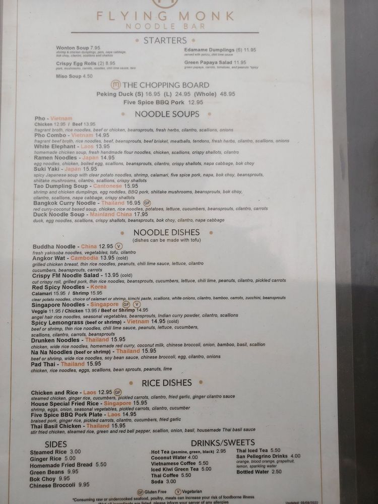 Welcome to Flying Monk Noodle Bar, a vibrant Vietnamese gem nestled in the heart of Savannah at 5 W Broughton St. This restaurant offers a delightful fusion of flavors that reflect various Southeast Asian cuisines. Whether you're in the mood for their famous drunken noodles or the aromatic beef pho, each dish is designed to tantalize your taste buds with fresh and bold flavors.